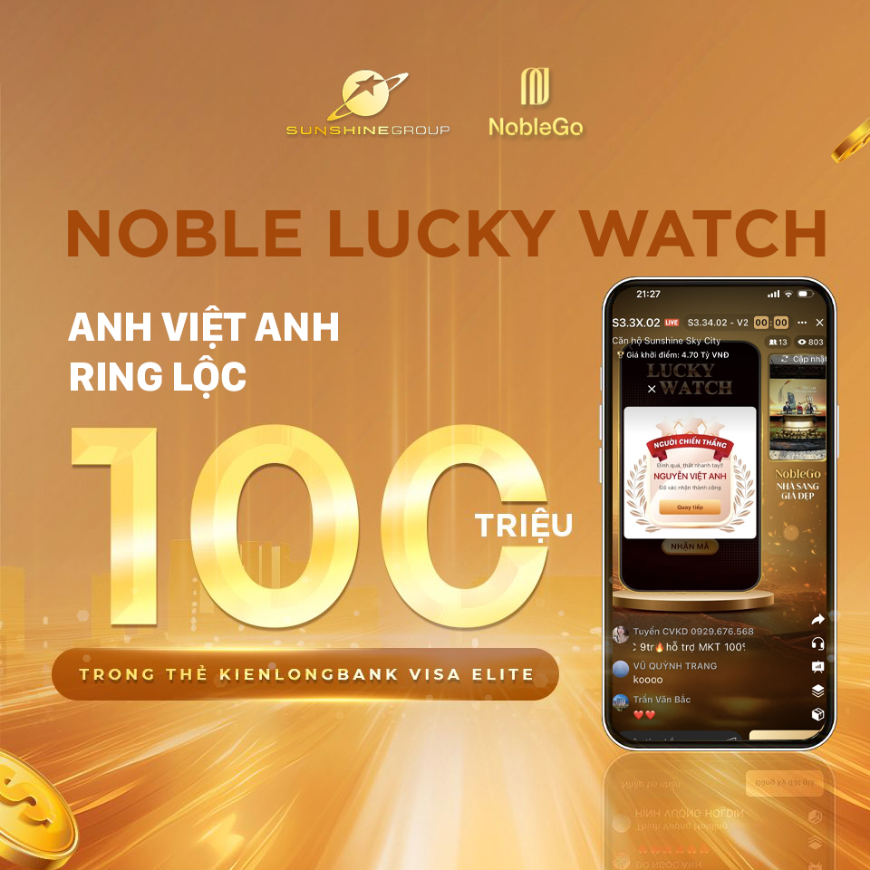 Noble Lucky Watch: Xin chúc mừng Anh Việt Anh khán giả may mắn đã rinh lộc 100 triệu đồng trong thẻ KienlongBank Visa Elite quyền lực khi theo dõi trực tiếp trên Noble App!