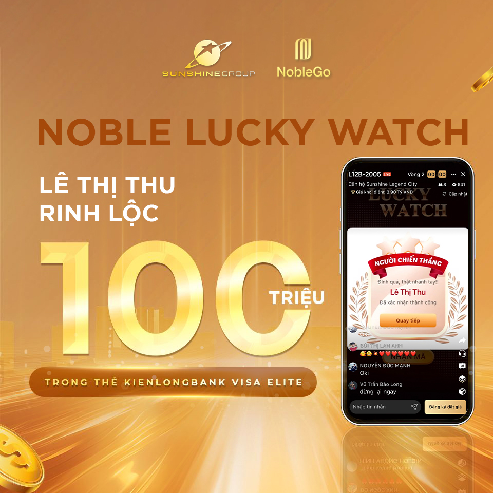 • Noble Lucky Watch: Xin chúc mừng Chị Thu – khán giả may mắn đã rinh lộc 100 triệu đồng trong thẻ KienlongBank Visa Elite quyền lực khi theo dõi trực tiếp trên Noble App!