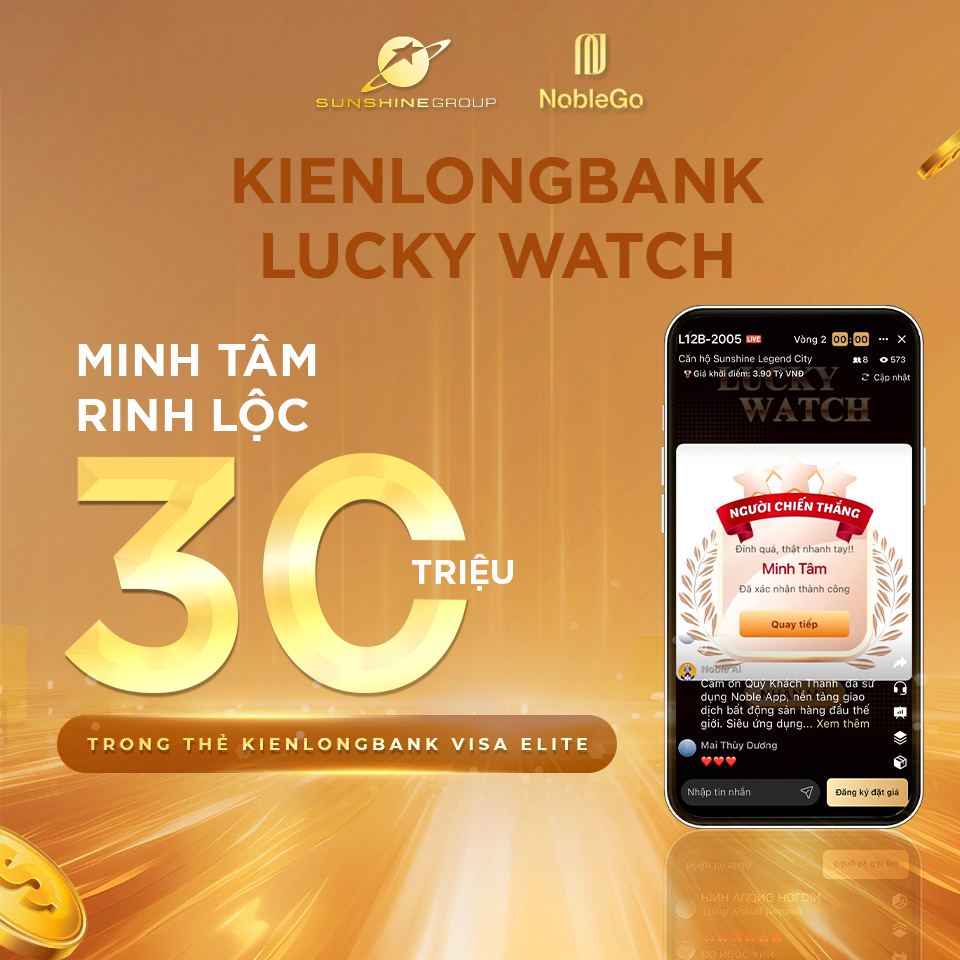 • KienlongBank Lucky Watch: Xin chúc mừng Chị Tâm – khán giả may mắn đã rinh lộc 30 triệu đồng trong thẻ KienlongBank Visa Elite quyền lực khi liên kết tài khoản kienlongbank trên app Noble và theo dõi trực tiếp các phiên live!